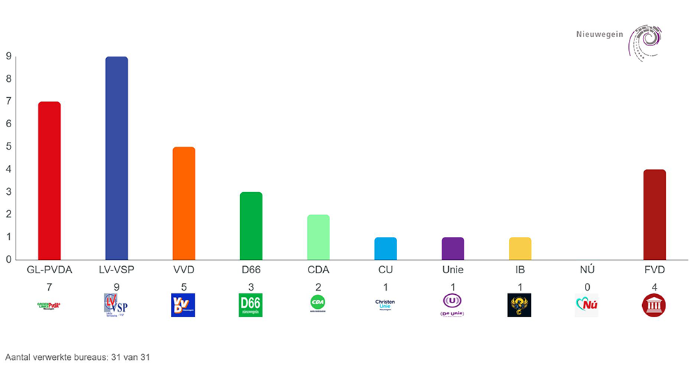 Hieronder vindt u de uitslag en zetelverdeling.