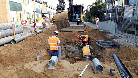 De werkzaamheden in Kerkveld zijn volop bezig. Het bedrijf Pauw Dodewaard voert het werk uit, in opdracht van de gemeente.