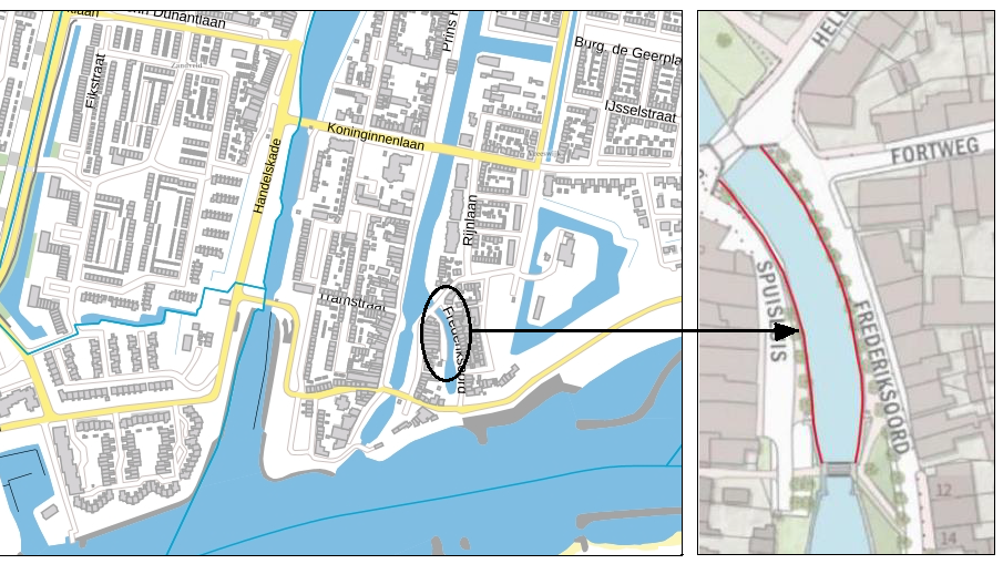 • Op de kade staan aan beide kanten leibomen die we willen houden.