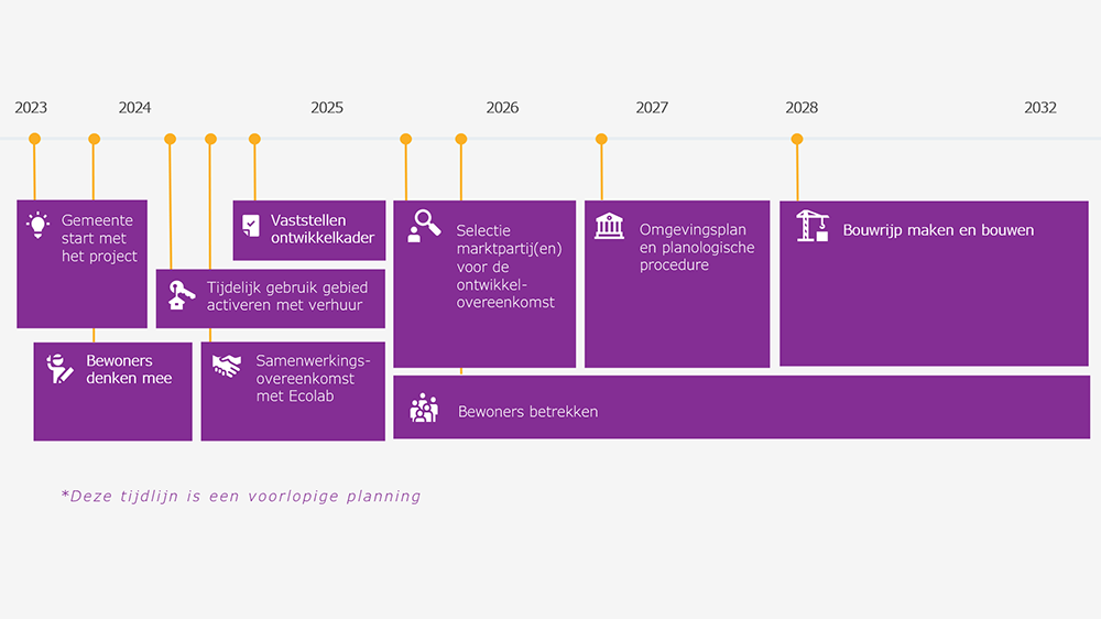 - 2025: Selectie marktpartij(en) voor de ontwikkelovereenkomst